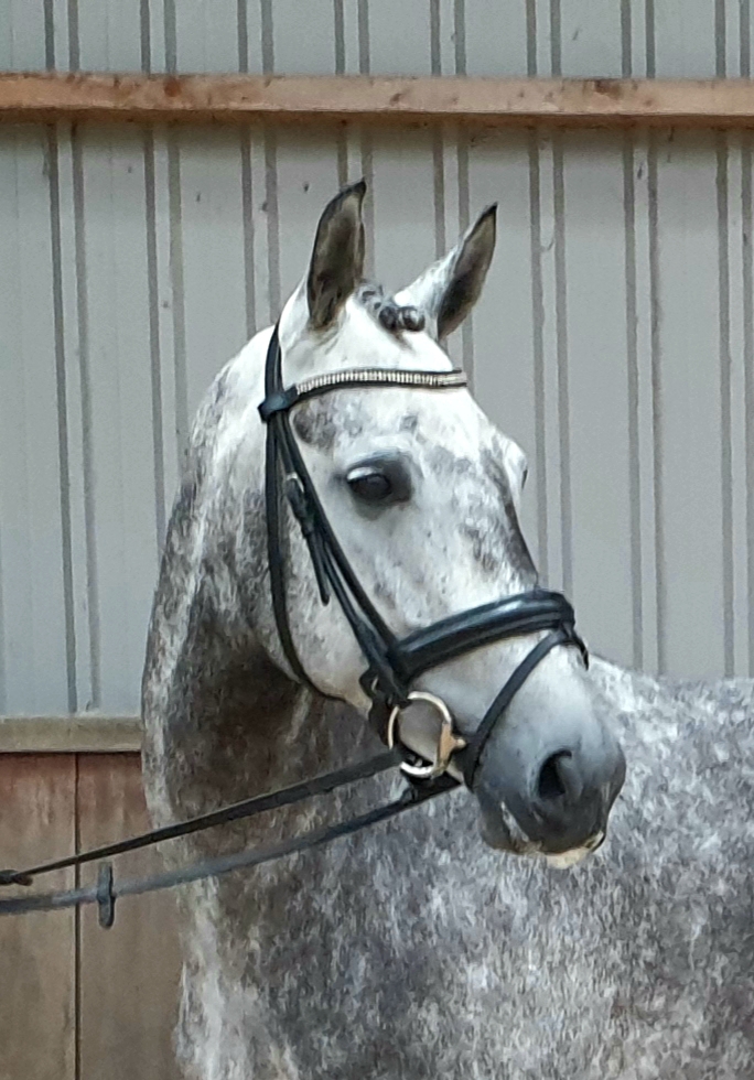 Jacky is a lovely 5 years old mare with a lot of potential in dressage. She has a willing character and is very sweet in and around the stables. She has three very solid paces and a good perfect mix of temperament and work ability. She has been under the saddle for about one year. She has no behavioural issues and is completely heallthy. Jacky is not suitable for a novice.
